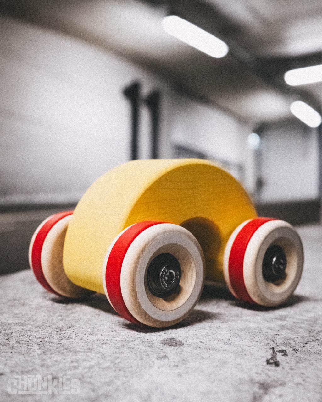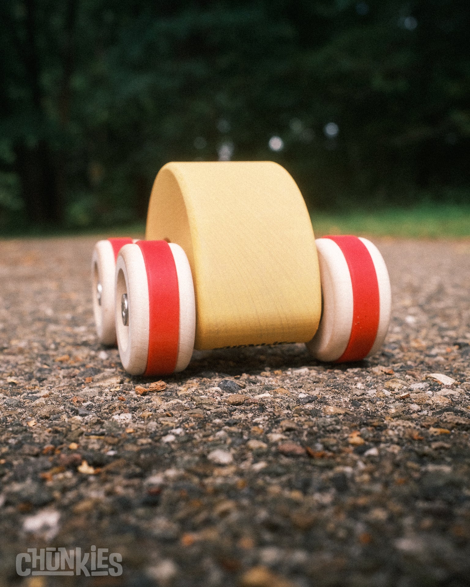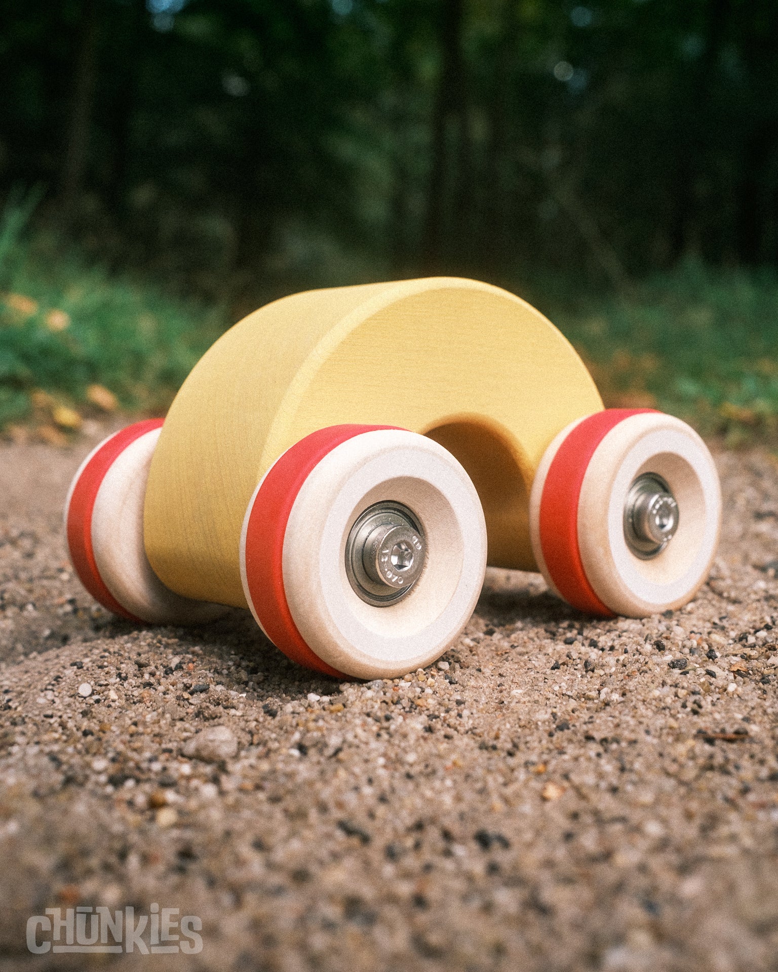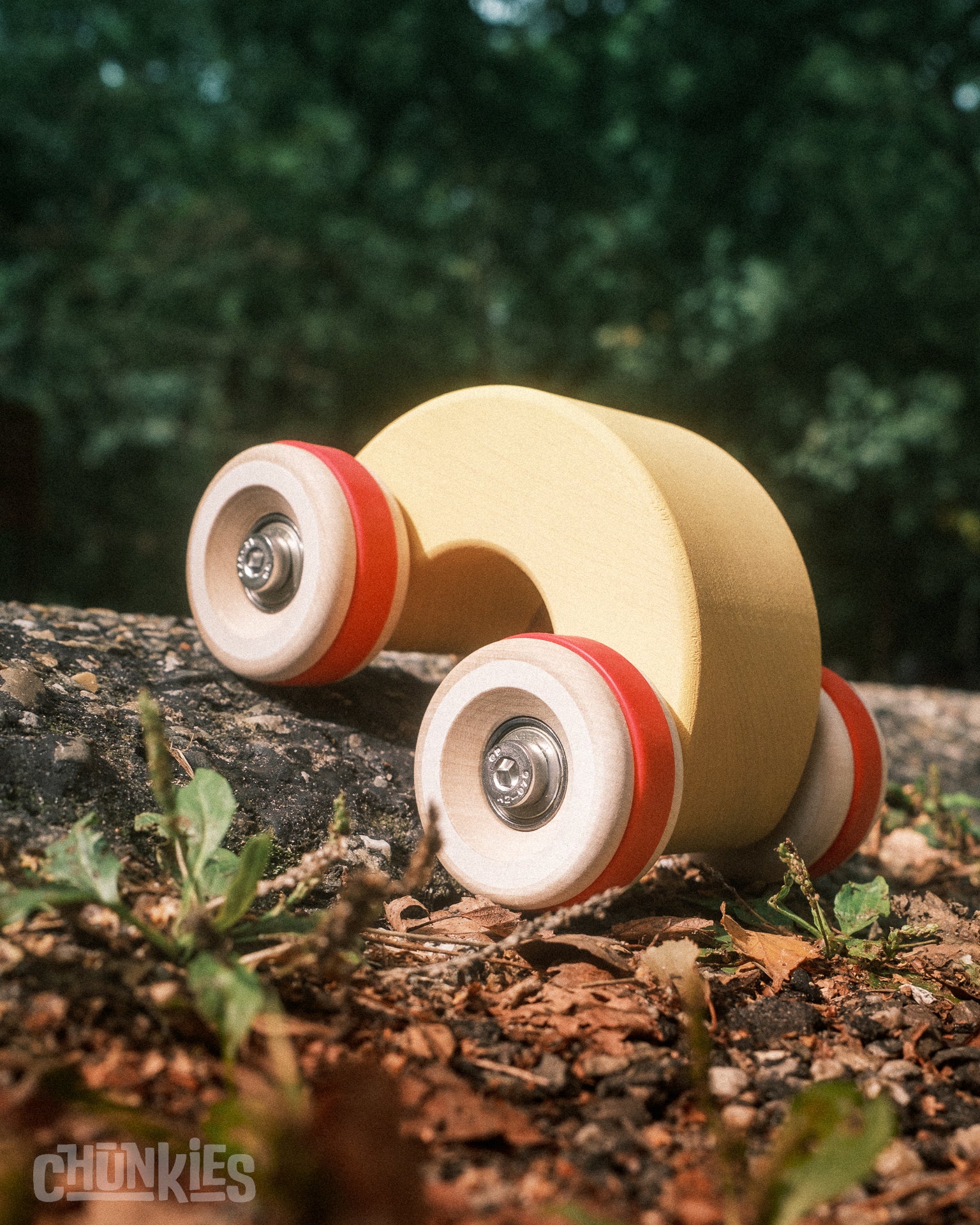 Chunkies are solid wooden toy cars with the silhouette of classic cars. They are built to last and designed to roll smoothly with real steel axles and skate bearings. Perfect for pushing, imaginative play, and collecting. There are no fixed rules – all forms of play are encouraged! Let your creativity lead the way and invent your own adventures.