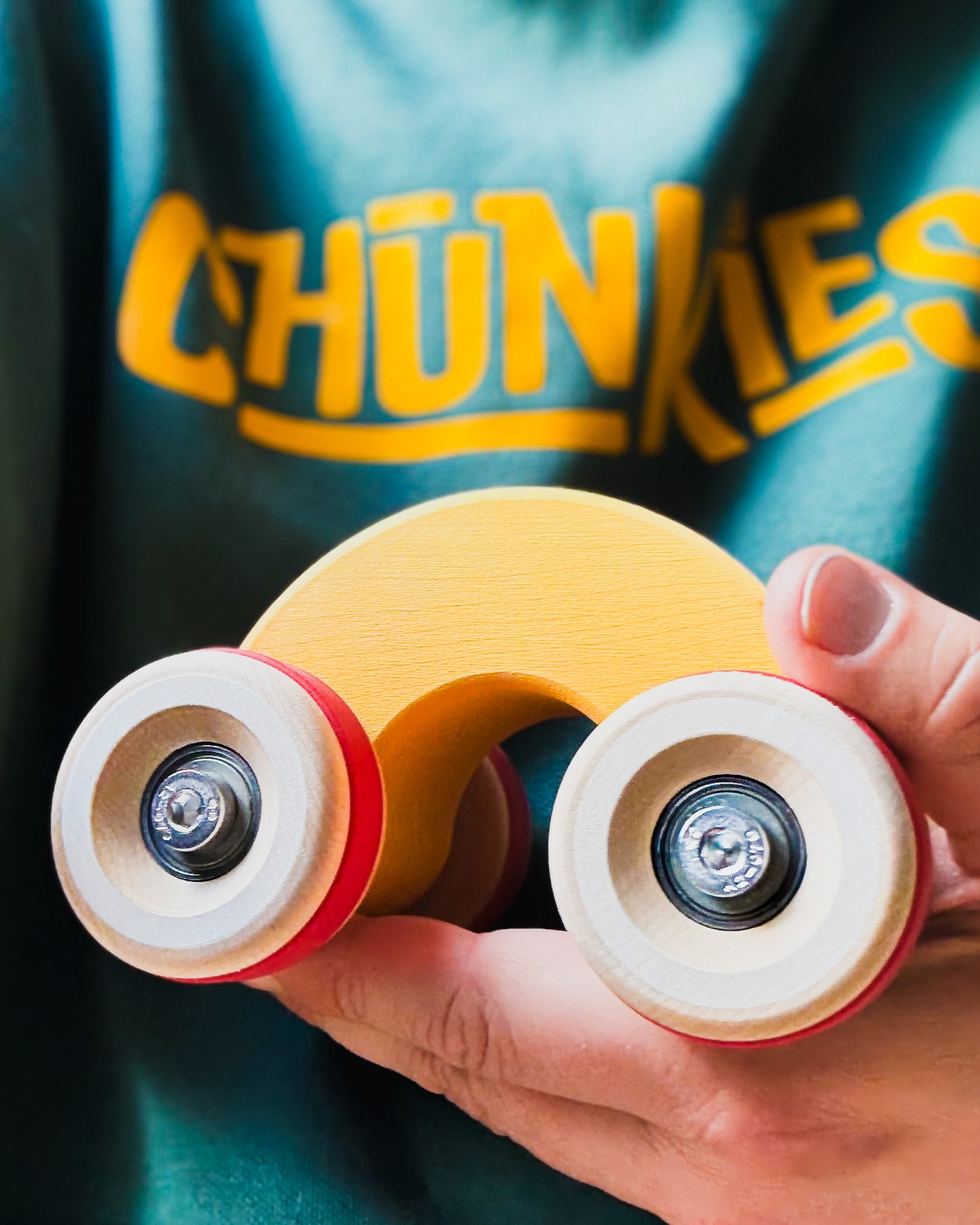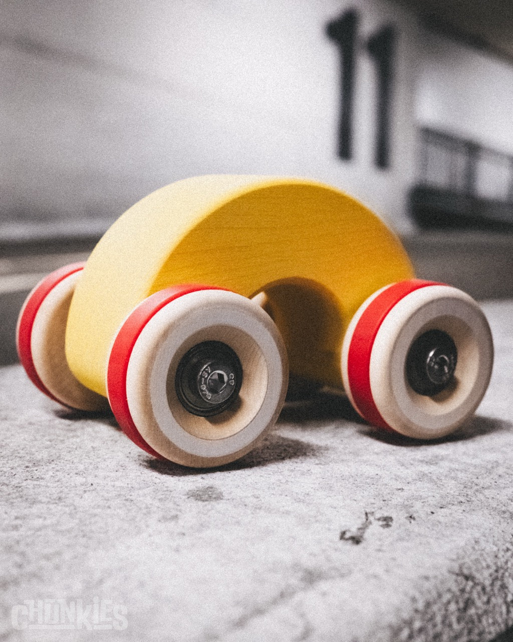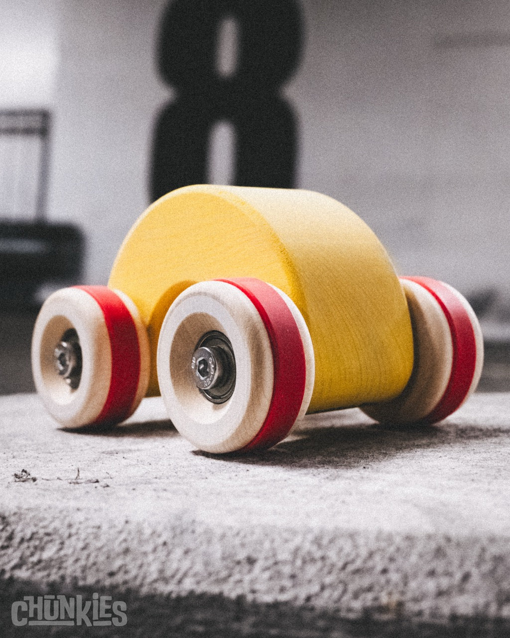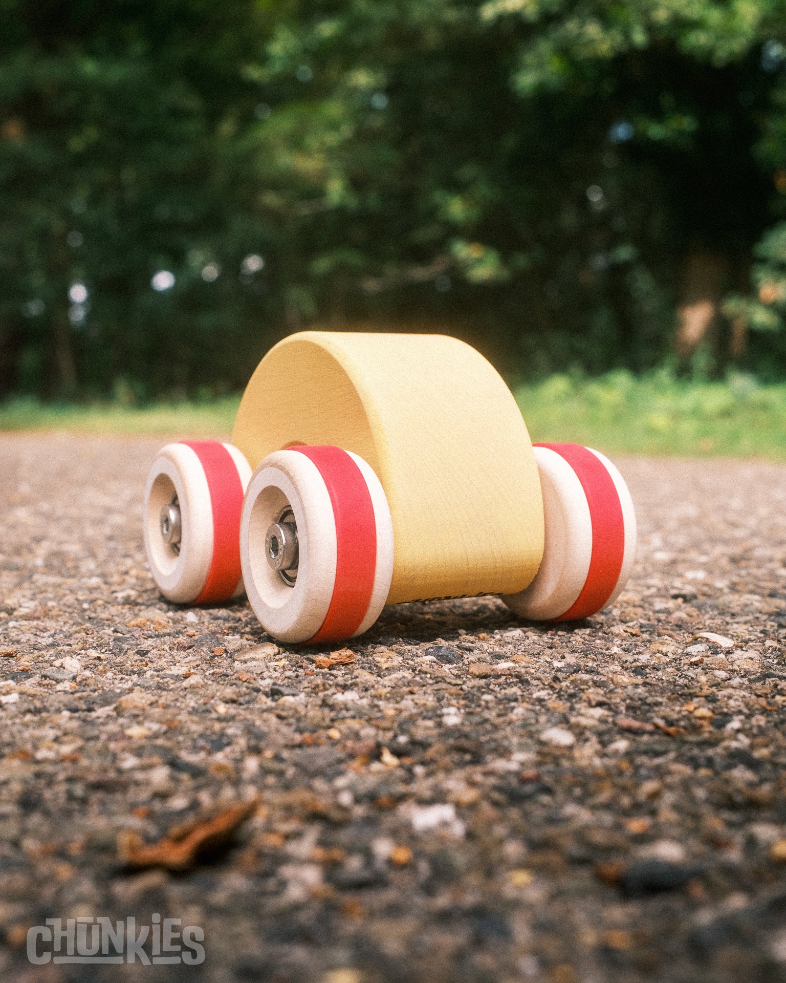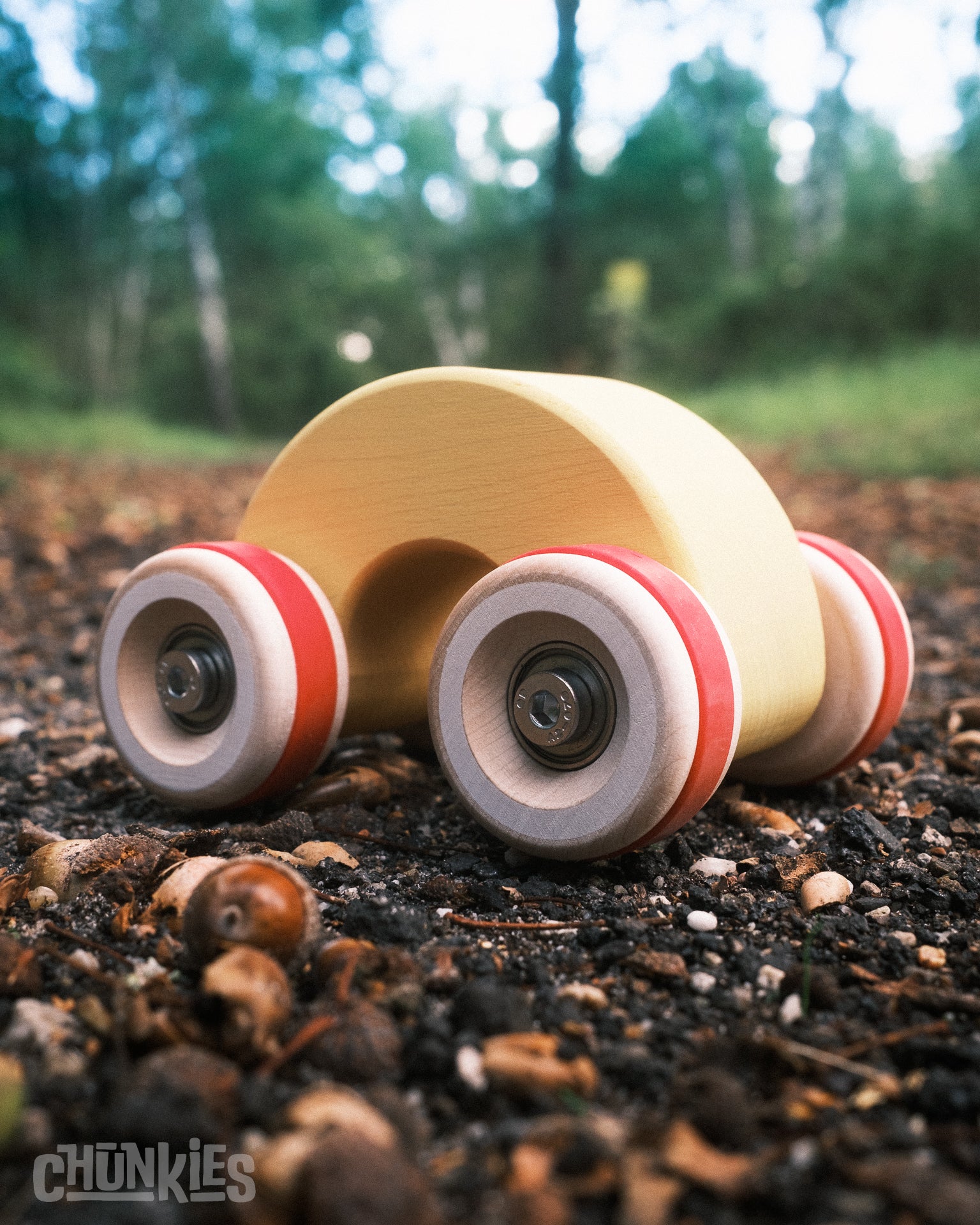 Chunkies are solid wooden toy cars with the silhouette of classic cars. They are built to last and designed to roll smoothly with real steel axles and skate bearings. Perfect for pushing, imaginative play, and collecting. There are no fixed rules – all forms of play are encouraged! Let your creativity lead the way and invent your own adventures.